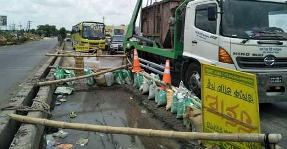 সাভারে সেতু সংস্কারে এক লেন বন্ধ, দীর্ঘ যানজট