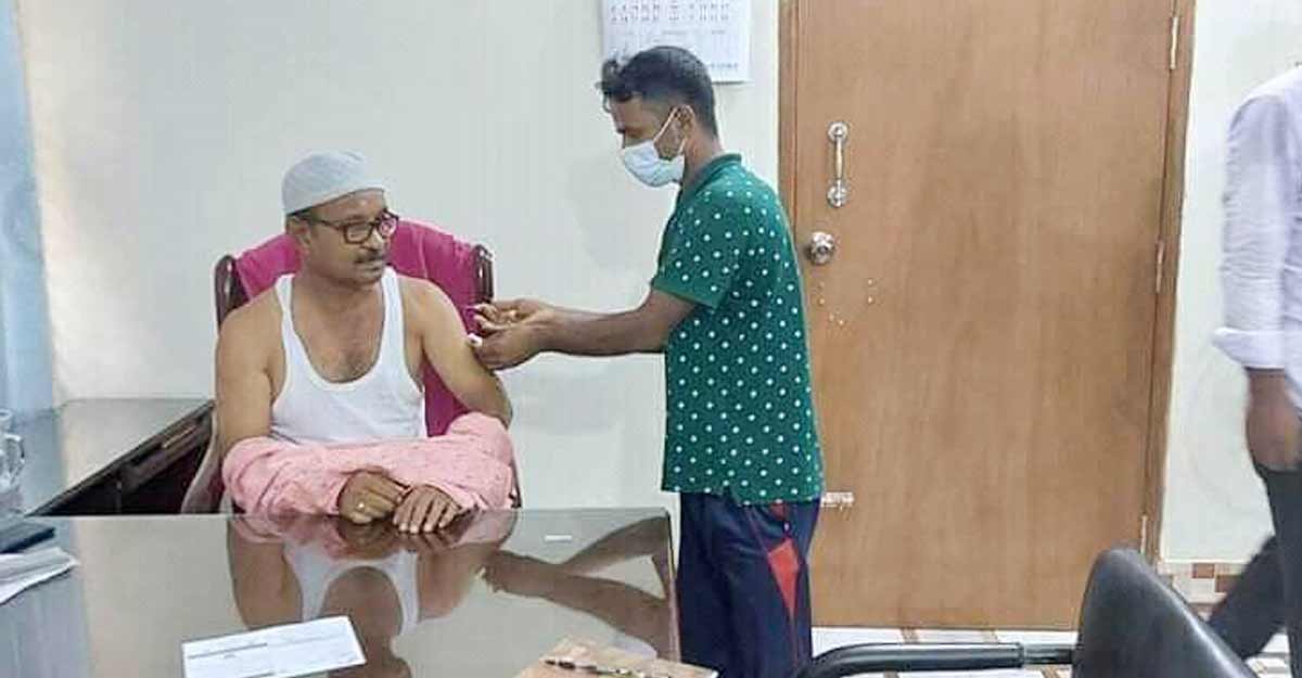 বাসায় বসে টিকা নিলেন তানোর উপজেলা চেয়ারম্যান