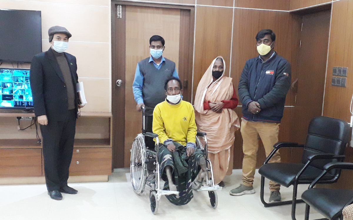 জীবনযুদ্ধে কষ্ট মেনে দুই পায়ের পাতা ও ডান হাতের তিনটি আঙুলছাড়াই চলাফেরা করতেন তিনি। ১১ জানুয়ারি ফেসবুকের পোস্টে হুইলচেয়ারের সহযোগিতা চাওয়ার সঙ্গে সঙ্গেই জেলা প্রশাসক ওই প্রতিবন্ধীকে একটি হুইলচেয়ার ও নগদ আর্থিক সহযোগিতা করেন।