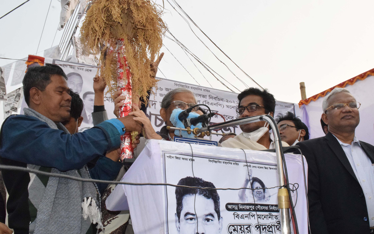 দিনাজপুর পৌর নির্বাচনে প্রচারণা সভায় বক্তব্য দিচ্ছেন মির্জা ফখরুল ইসলাম আলমগীর