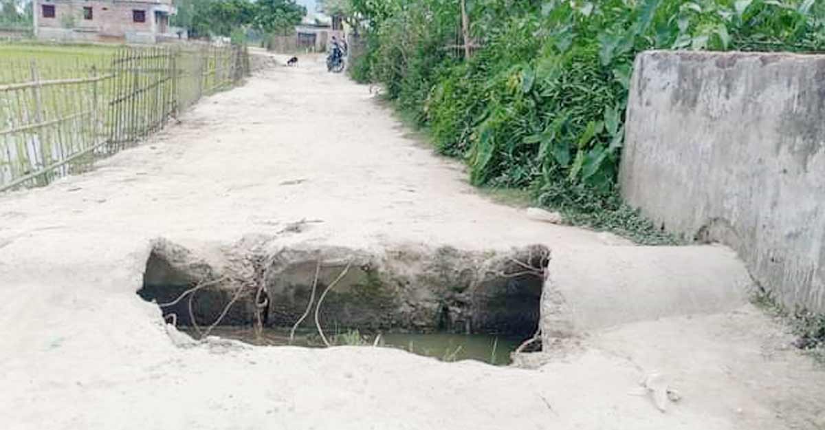 মসজিদে যাওয়ার রাস্তার একমাত্র কালভার্ট যেন মরণফাঁদ