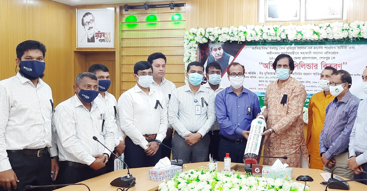 জাতির জনক বঙ্গবন্ধু শেখ মুজিবুর রহমানের ৪৬তম শাহাদাতবার্ষিকী এবং স্বাধীনতার সুর্বণজয়ন্তী উপলক্ষে ২৫০ শয্যা বিশিষ্ট শেরপুর সদর হাসপাতালে ১০টি অক্সিজেন সিলিন্ডার প্রদান করা হয়েছে। বুধবার (১৮ আগস্ট) বেলা ১১টার দিকে করোনা আক্রান্ত রোগীদের সেবায় অগ্রণী ব্যাংক লিমিটেড শেরপুর শাখার পক্ষ থেকে এসব অক্সিজেন সিলিন্ডার প্রদান করা হয়।