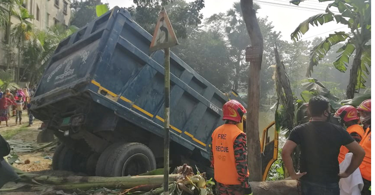 নোয়াখালীর বেগমগঞ্জে বালুবোঝাই ট্রাক নিয়ন্ত্রণ হারিয়ে খাদে