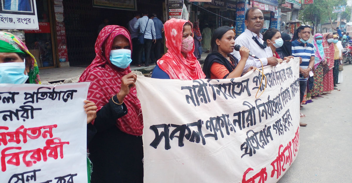 মঙ্গলবার (২৪ আগস্ট) দুপুরে রংপুর নগরের প্রেসক্লাব চত্বরের সামনে অনুষ্ঠিত মানববন্ধন সমাবেশ থেকে এ অভিযোগ তুলেন জেলা সমাজতান্ত্রিক মহিলা ফোরাম নেতারা। নারী নির্যাতন প্রতিরোধ দিবস উপলক্ষে এ কর্মসূচি পালন করে সংগঠনটি।