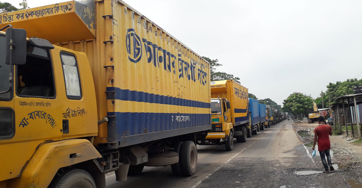 সরেজমিনে দেখা যায়, দৌলতদিয়া ফেরিঘাটের জিরো পয়েন্ট থেকে ঢাকা-খুলনা মহাসড়কের বাংলাদেশ হ্যাচারিজ পর্যন্ত এলাকায় ফেরি পারের জন্য অপেক্ষায় রয়েছে অসংখ্য ট্রাক। অন্যদিকে দৌলতদিয়া ঘাট থেকে ১৩.৫ কিমি দূরে রাজবাড়ী-কুষ্টিয়া আঞ্চলিক মহাসড়কের গোয়ালন্দ মোড় থেকে রাজবাড়ীমুখী পণ্যবাহী ট্রাক ও কাভার্ডভ্যানকে আটকে রাখা হয়েছে। এগুলো অগ্রাধিকার ভিত্তিতে পার করা হচ্ছে।
