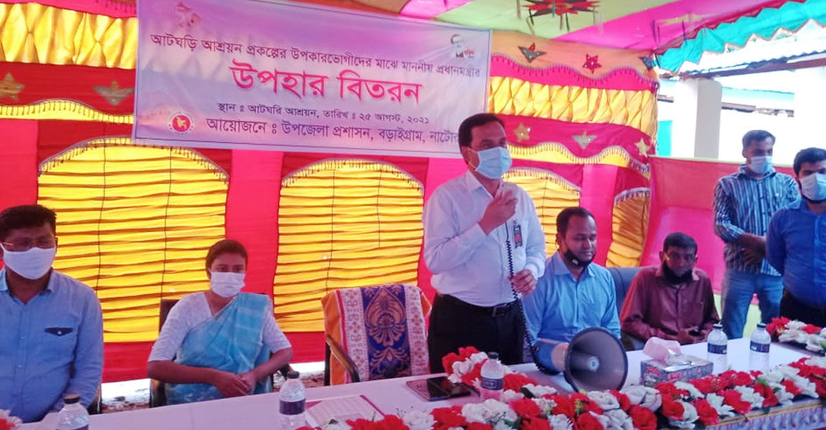 মুজিববর্ষে প্রধানমন্ত্রীর উপহার আশ্রয়ণ প্রকল্পে থাকা অসহায় মানুষদের কর্মসংস্থানে সব ধরনের ব্যবস্থা গ্রহণ করা হবে বলে জানিয়েছেন নাটোরের জেলা প্রশাসক শামীম আহমেদ। বুধবার (২৫ আগস্ট) দুপুরে নাটোরের বড়াইগ্রাম উপজেলার আটঘড়িয়া আশ্রয়ণ প্রকল্প পরিদর্শনের পর এক মতবিনিময় সভায় প্রধান অতিথির বক্তব্যে তিনি এ কথা জানান।