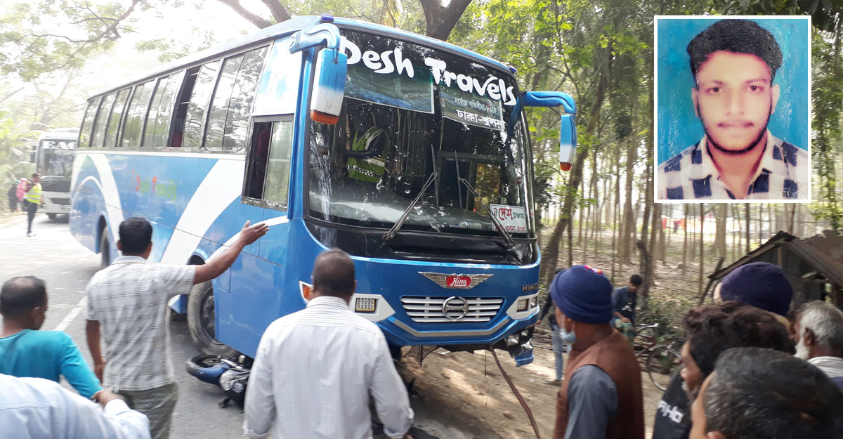 যশোর থেকে মোটরসাইকেল মেরামত করে মাদারীপুরের কালকিনিতে নিজ বাড়িতে ফেরা হলো না ইঞ্জিনিয়ারিং বিভাগের শিক্ষার্থী মাসুদ রানা কিরনের (২০)। মাসখানেক আগে কেনা নতুন মোটরসাইকেল যশোর থেকে মেরামত করে হাসিমুখেই ঘরে ফিরছিলেন তিনি। যাত্রবাসী বাসের ধাক্কায় নিভে গেল তার প্রাণ।