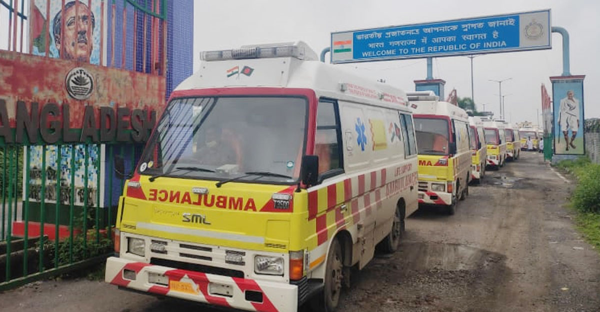 বেনাপোল সিঅ্যান্ডএফ স্টাফ অ্যাসোসিয়েশনের সাধারণ সম্পাদক সাজেদুর রহমান জানান, অ্যাম্বুলেন্সগুলো ভারতের পেট্রাপোল বন্দর থেকে বেনাপোল বন্দরে প্রবেশ করেছে। কাগজপত্রের আনুষ্ঠানিকতা শেষ হলে অ্যাম্বুলেন্সগুলো ঢাকার উদ্দেশ্যে ছেড়ে যাবে।