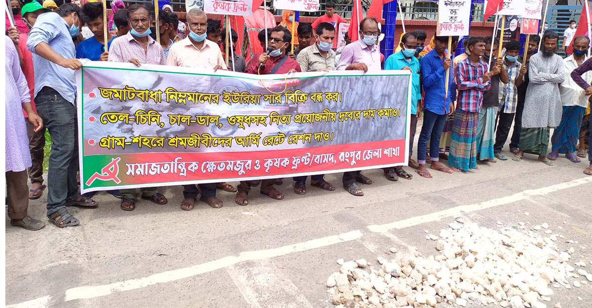 বক্তারা আরও বলেন, সরকার নিজেদের কৃষি ও কৃষকবান্ধব দাবি করলেও বাস্তবে তা উল্টো। গ্রাম-শহরে শ্রমজীবীদের কাজ নেই। দ্রব্যমূল্যের ঊর্ধ্বগতি জনজীবনে নাভিশ্বাস উঠেছে। বর্তমানে তেল, চিনি, চাল, ডালসহ নিত্যপ্রয়োজনীয় দ্রব্যের দাম ক্রমাগত বেড়ে চলেছে। দিন দিন সাধারণ মানুষের ক্রয়ক্ষমতার বাইরে চলে যাচ্ছে। এ পরিস্থিতিতে ক্ষতিগ্রস্ত ক্ষেতমজুরদের সারা বছর কাজ, শ্রমজীবীদের আর্মিরেটে রেশন, প্রত্যেক ওয়ার্ডে বা ইউনিয়নে টিসিবি ও ওএমএস সুবিধা নিশ্চিত করা এখন সময়ের দাবি।