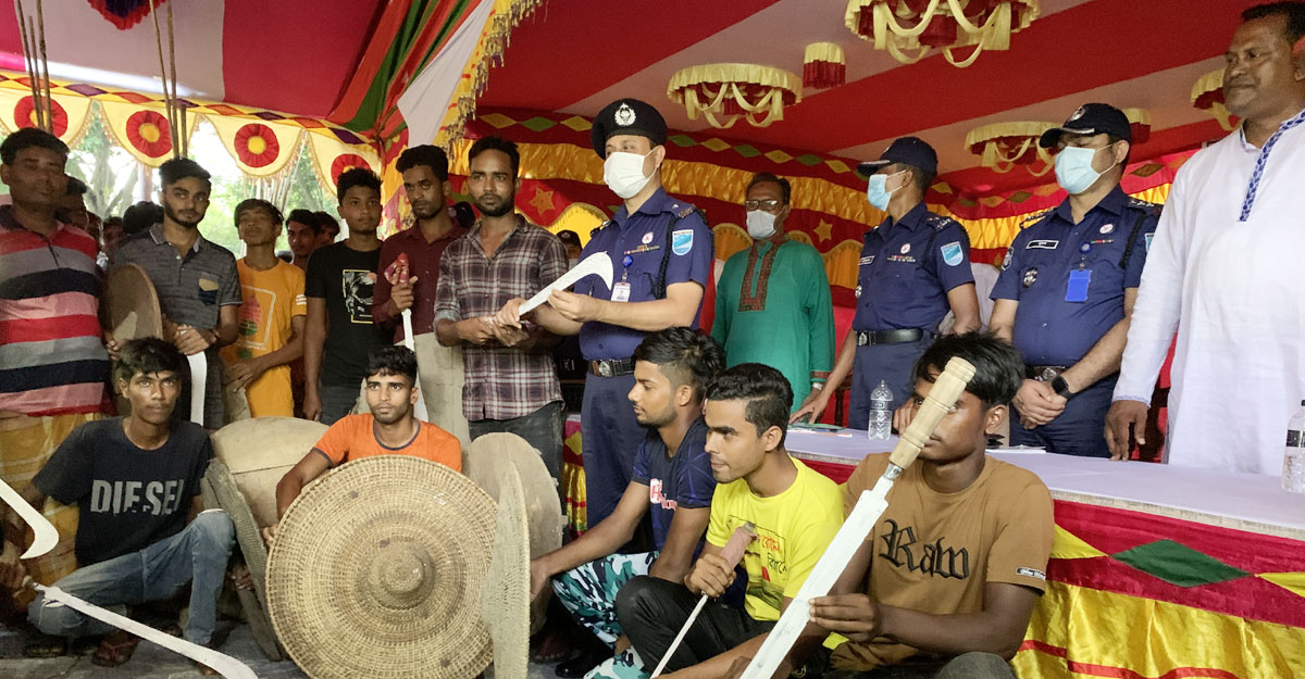ফরিদপুরের বোয়ালমারী উপজেলায় বিশেষ আইনশৃঙ্খলা সভায় দীর্ঘদিনের বিরোধের অবসান ঘটিয়ে পুলিশের কাছে দেশীয় অস্ত্রশস্ত্র জমা দিয়েছে বর্তমান ও সাবেক ইউপি চেয়ারম্যানের দুটি পক্ষ।