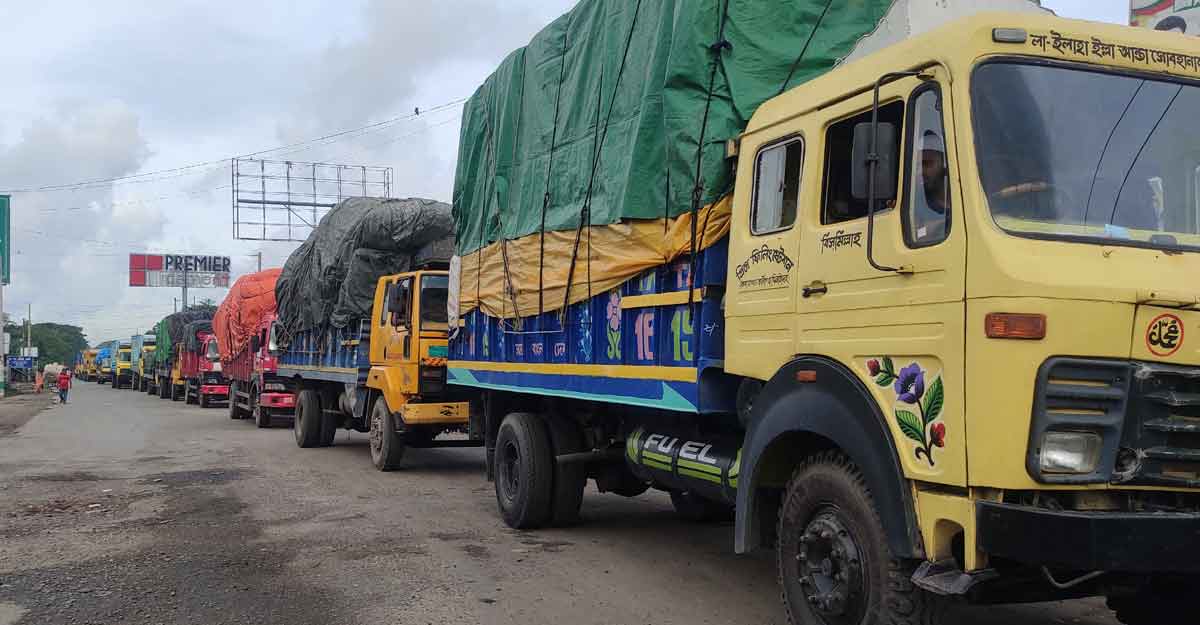 দৌলতদিয়ায় পারের অপেক্ষায় পণ্যবাহী ৫ শতাধিক ট্রাক