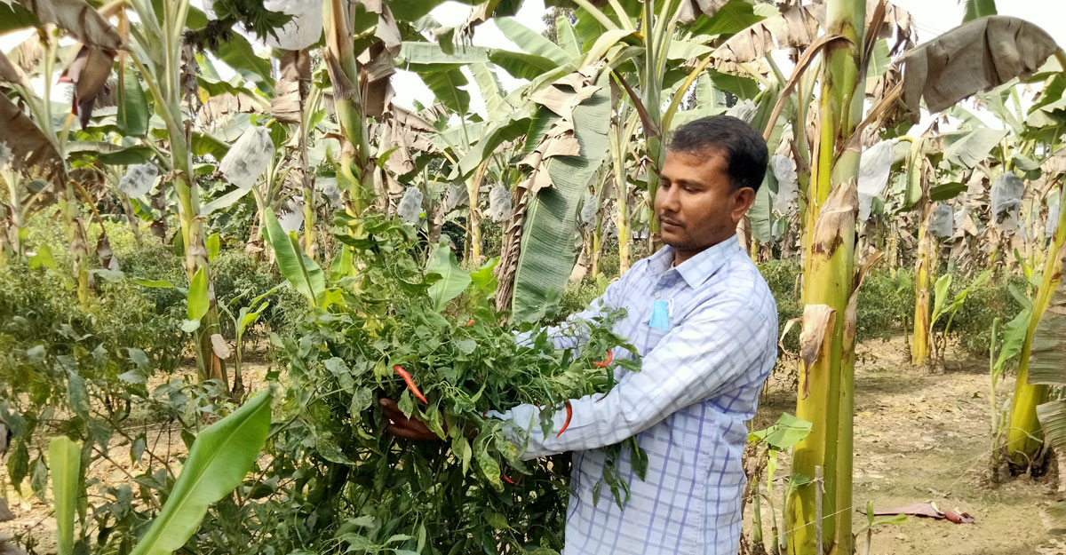 চুয়াডাঙ্গা কৃষি সম্প্রসারণ অধিদপ্তরের উপপরিচালক আলী হাসান বলেন, চুয়াডাঙ্গায় বছরে প্রায় ১৬শ ৬৩ হেক্টর জমিতে কলার আবাদ হয়ে থাকে। যাদের প্রযুক্তিগত জ্ঞান আছে তারা কলা আবাদের জমিতেই কয়েকটি ফসল আবাদ করছেন। তবে একটি প্যাটার্ন (এক ধরনের মাল্টি লেয়ার মিক্সড ক্রপিং টেকনিক-যেখানে একাধিক ফসল একই জমিতে একই সময়ে চাষ করা হয়) খুব জনপ্রিয় হচ্ছে। কলা বাগানের মধ্যে মরিচ ও একাঙ্গী চাষ করে লাভবান হচ্ছেন কৃষকরা।