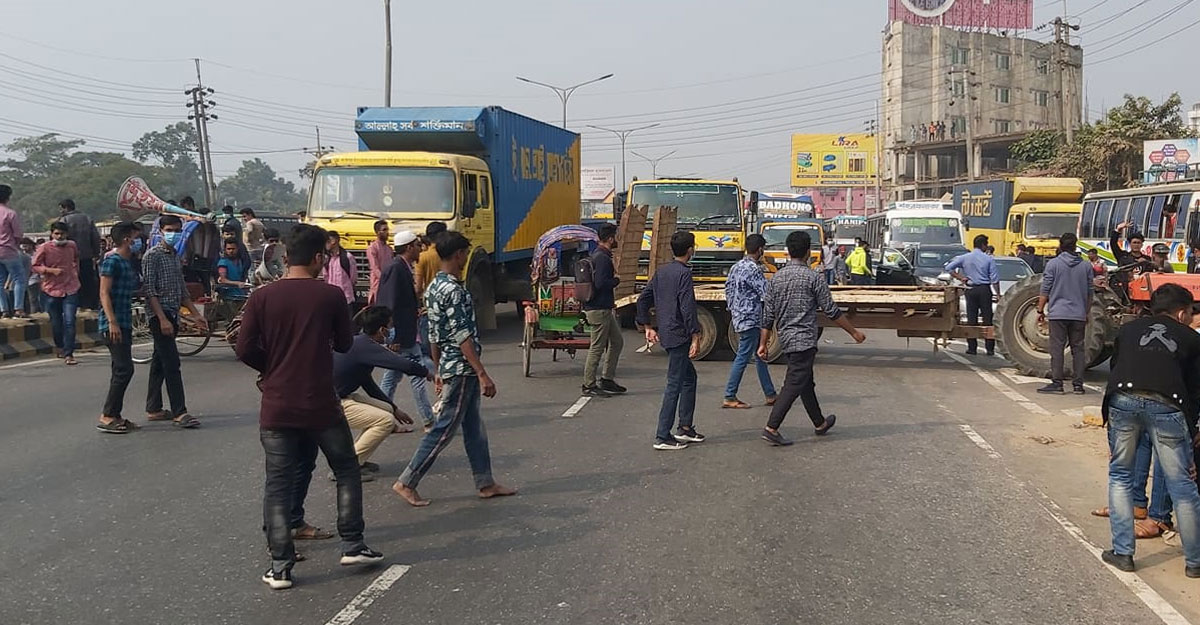 মহাসড়ক অবরোধ করে পলিটেকনিক শিক্ষার্থীদের বিক্ষোভ