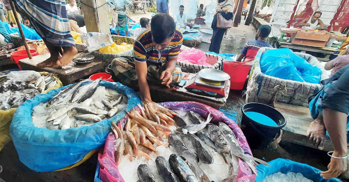 এর আগে গত রোববার (২২ আগস্ট) দুপুরে বাগেরহাটের কচুয়া উপজেলার বাধাল মাছের বাজারে চোখে পড়ে কয়েকটি ঝুড়িতে সাগরের বাইলা (তুলার ডাডি), জাবা, রয়নাসহ বেশ কিছু রং দেওয়া মাছ ঝুড়িতে সাজিয়ে অপেক্ষা করছেন ব্যবসায়ীরা। বিক্রিও হচ্ছে।