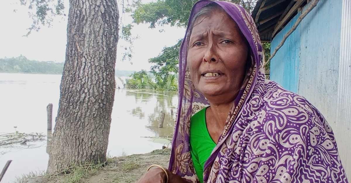 ‘রাতে ভয়ে ঘুম হয় না। কখন জানি নদী টান মেরে ঘর নিয়ে যায়। ঘর চলে গেলে এর সাথে আমারও ভেসে যাওয়া ছাড়া কোনো উপায় থাকবে না’ বলে কাঁদতে থাকেন বৃদ্ধা এই নারী।