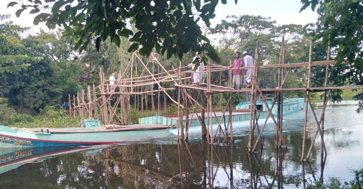সাঁকোটি যখন ভেঙে যায় তখন সাঁতরে নদী পার হয় গ্রামবাসী