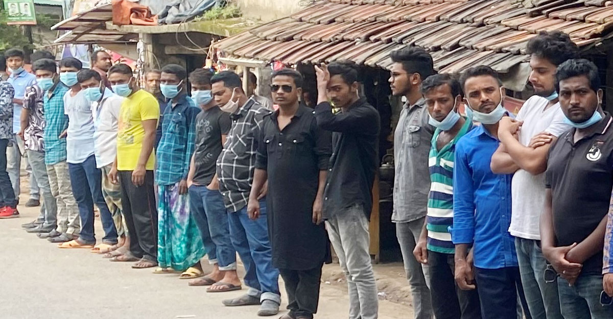 মশিউর রহমান (মাঝখানে কালো শার্ট পরা মুখে মাস্ক)