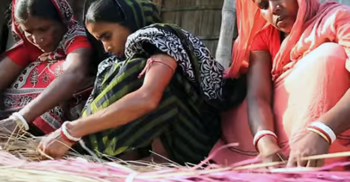 শীতল পাটি তৈরিতে ব্যস্ত নারী শ্রমিক