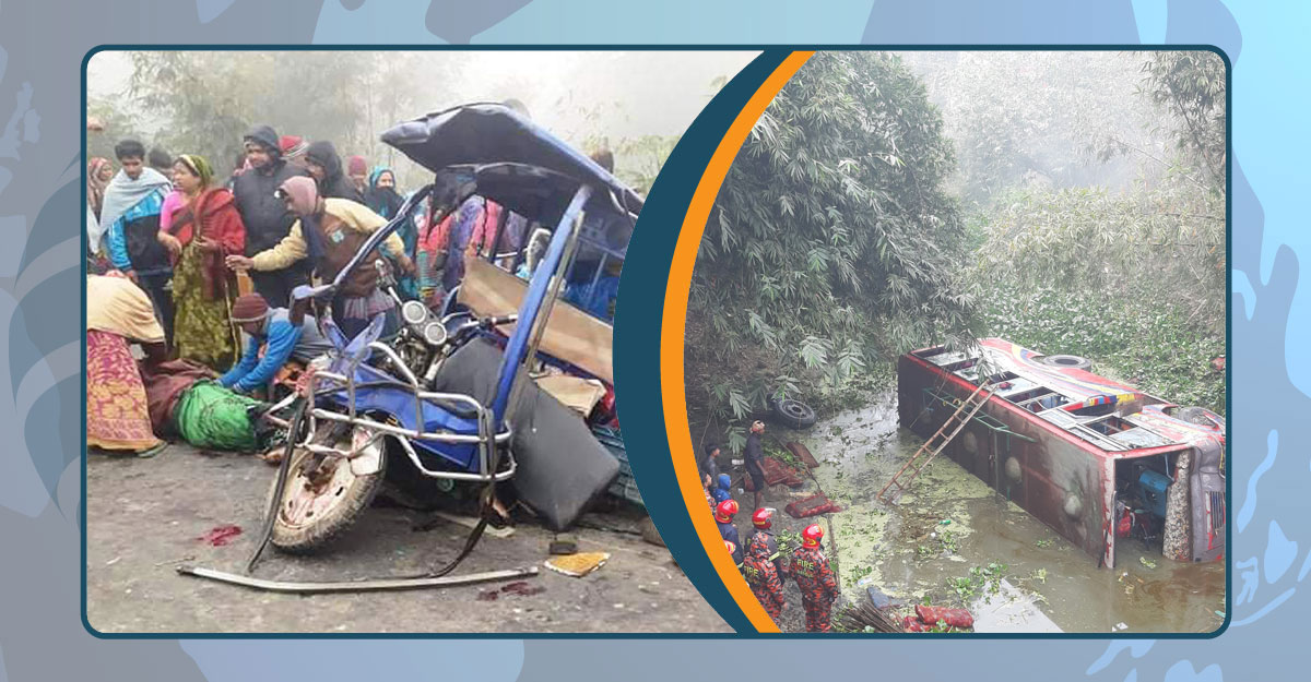 অটোরিকশাকে চাপা দিয়ে খালে বাস, নিহত ১