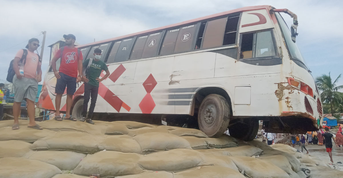 নিয়ন্ত্রণ হারিয়ে বাস সৈকতে, অল্পের জন্য রক্ষা পেলেন পর্যটকরা