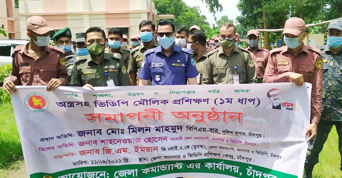 আনসার ও ভিডিপির চাঁদপুর জেলা কমান্ড্যান্টের কার্যালয়ে ২১ দিনব্যাপী অস্ত্রসহ ভিডিপি মৌলিক প্রশিক্ষণের (১ম ধাপ) সমাপনী অনুষ্ঠিত হয়েছে। শনিবার (১১ সেপ্টেম্বর) দুপুরে জেলা আনসার ও ভিডিপির প্রশিক্ষণ কেন্দ্রে আয়োজিত সমাপনী অনুষ্ঠানে প্রধান অতিথি হিসেবে বক্তব্য দেন চাঁদপুরের পুলিশ সুপার (এসপি) মিলন মাহমুদ।