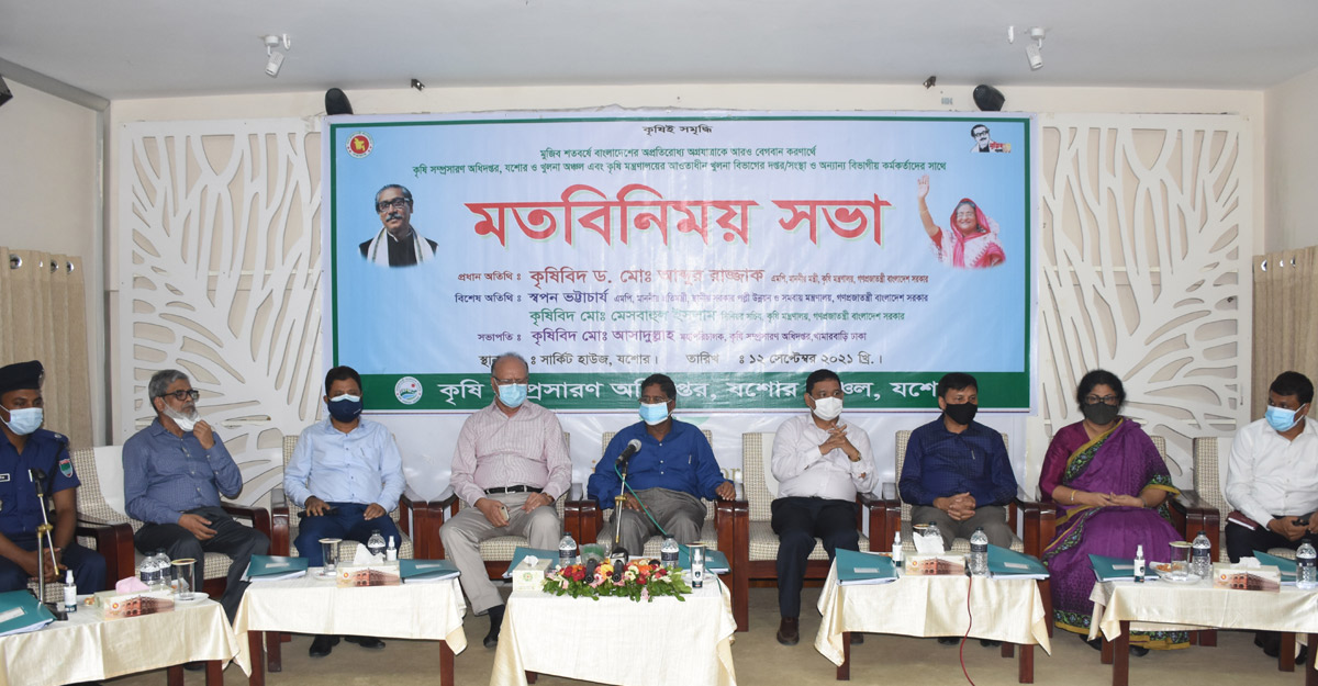 কৃষি সম্প্রসারণ অধিদফতরের মহাপরিচালক কৃষিবিদ আসাদুল্লাহর সভাপতিত্বে মতবিনিময়কালে বক্তব্য রাখেন, বিএডিসি চেয়ারম্যান কৃষিবিদ ড. অমিতাভ সরকার, কৃষি গবেষণা কাউন্সিলর নির্বাহী অফিসার ড. শেখ মোহাম্মদ বখতিয়ার, কৃষি মন্ত্রণালয়ের অতিরিক্ত সচিব ওয়াহিদা আক্তার, এসআরডিআই মহাপরিচালক বিধান কুমার ভাণ্ডার, ব্রি মহাপরিচালক ড. মো শাহজাহান কবির, যশোরের জেলা প্রশাসক তমিজুল ইসলাম খান প্রমুখ।