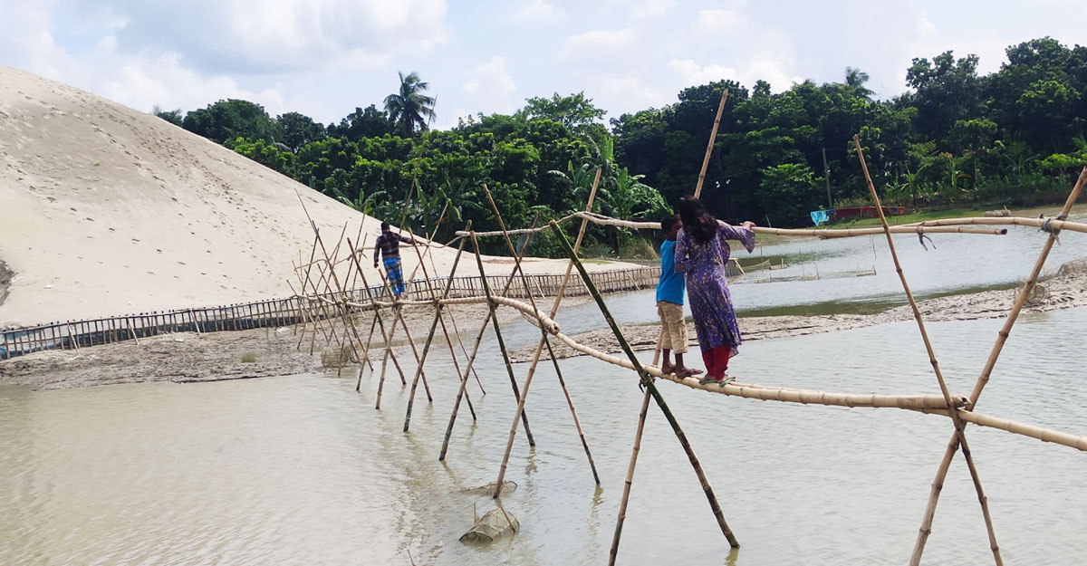 স্কুলে যেতে শিক্ষার্থীদের ভরসা বাঁশের সাঁকো