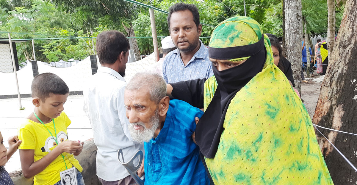 বয়সের ভারে নুয়ে পড়েছেন খান দেলোয়ার হোসেন। শতবর্ষী এই বৃদ্ধ লাঠিতে ভর করে দুই আত্মীয়কে নিয়ে এসেছেন বাইনতলা সরকারি প্রাথমিক বিদ্যালয় কেন্দ্রে। তিনি ঠিকভাবে কথাও বলতে পারছিলেন না। তবুও বললেন নিজের ভোট দিতে এসেছি।