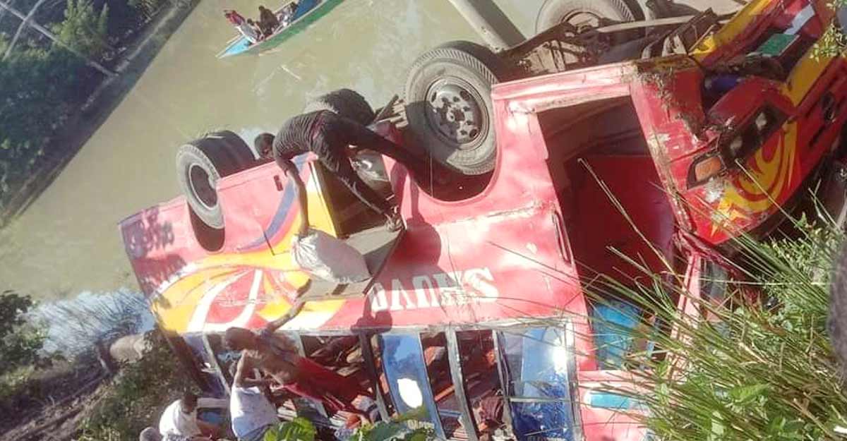 মানিকগঞ্জে নিয়ন্ত্রণ হারিয়ে যাত্রীবোঝাই বাস খাদে, আহত ১৫