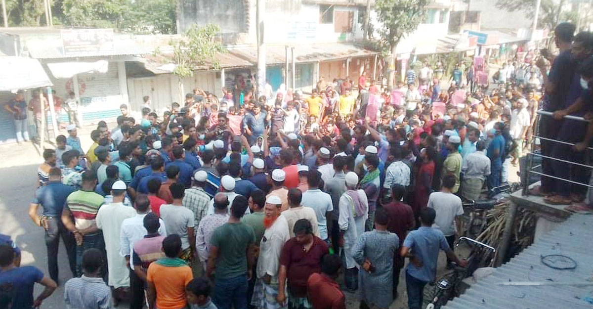 মানববন্ধনে ওই এলাকার সর্বস্তরের জনগণ অভিযুক্তদের গ্রেফতার ও দৃষ্টান্তমূলক শাস্তির দাবি জানান। এ সময় তারা রাজু আহম্মেদ হত্যাকারীদের ফাঁসির দাবিতে স্লোগান দেন তারা।
