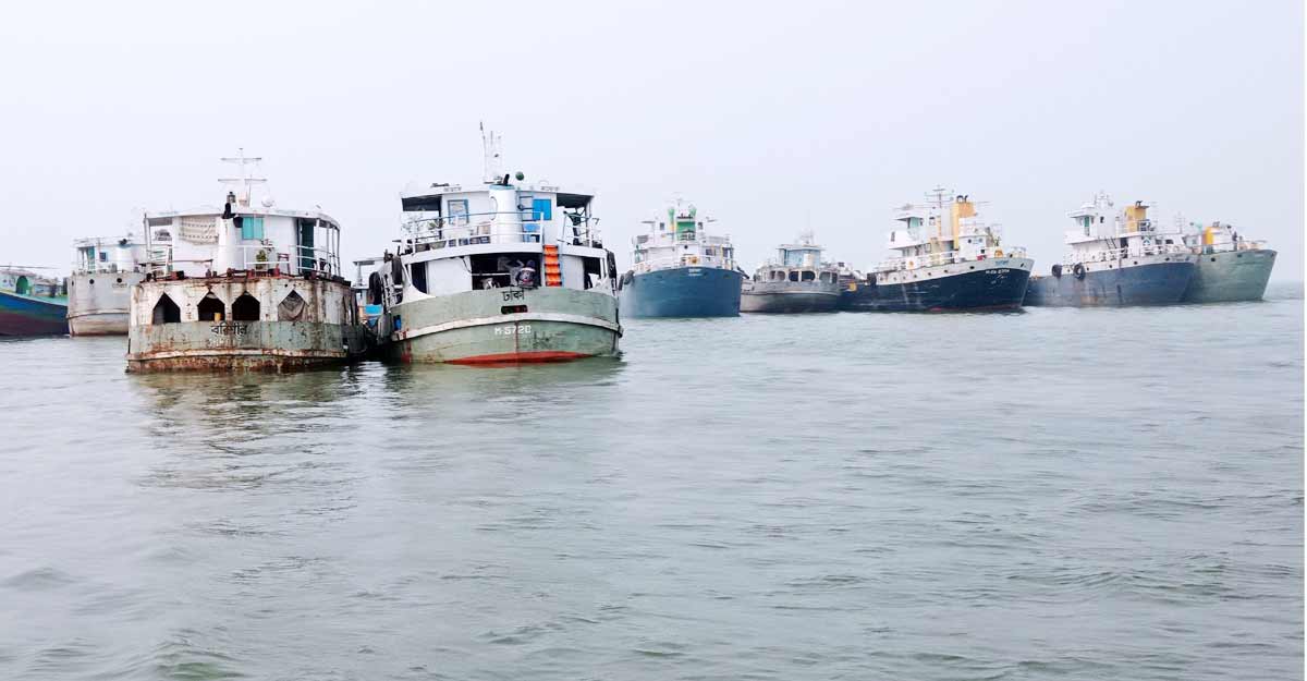 রাজবাড়ীর দৌলতদিয়া নৌবন্দরের কাছে আটকে আছে ৪০ কার্গো
