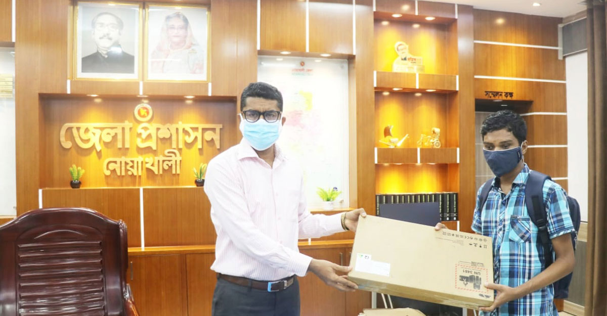 নোয়াখালীর সেনবাগ উপজেলার দৃষ্টিপ্রতিবন্ধী কলেজ শিক্ষার্থী মোহাম্মদ রাহি জি চৌধুরীকে কম্পিউটার উপহার দিলেন জেলা প্রশাসক (ডিসি) মোহাম্মদ খোরশেদ আলম খান। রোববার (২৬ সেপ্টেম্বর) দুপুরে জেলা প্রশাসকের কক্ষে এ কম্পিউটার প্রদান করা হয়।