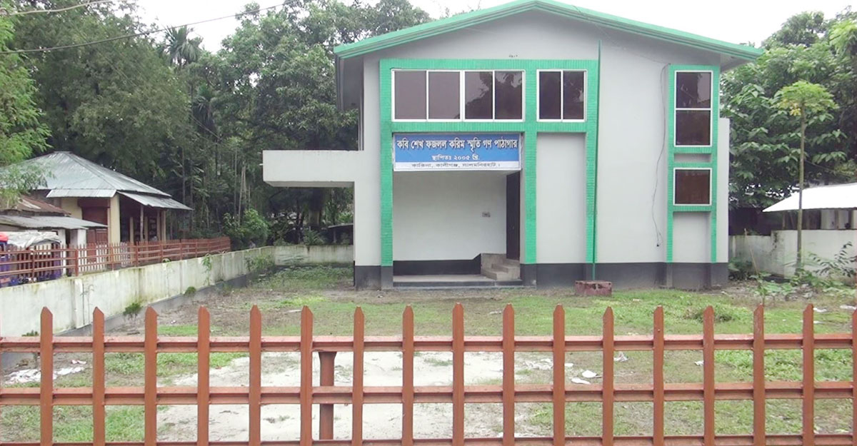 ২০০৫ সালে কবির স্মৃতিরক্ষার্থে জেলা প্রশাসনের উদ্যোগে নির্মিত হয় ‘শেখ ফজলল করিম গণপাঠাগার’। তৎকালীন দুর্যোগ ও ত্রাণ প্রতিমন্ত্রী আসাদুল হাবিব দুলু এটি উদ্বোধন করেন। তখন এটি রক্ষার্থে সব ধরনের ব্যবস্থা থাকলেও এখন আর তা নেই। পাঠাগারে নেই নিরাপত্তা প্রহরী ও পাঠক মহলের পদচারণ। বইপুস্তকগুলোও হারিয়ে যেতে বসেছে। ফলে বইপ্রেমীরা এখন সেখানে যান না। এদিকে পাঠাগারের পাশের দোকানপাট এটির সৌন্দর্য বিনষ্ট হয়ে গেছে। এ ছাড়া রাতের বেলায় এর আশপাশে বসে মাদকসেবীদের আড্ডা।
