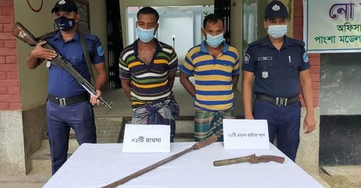 গ্রেফতার ব্যক্তিরা হলেন পাংশা থানার পুইজোর এলাকার মো. মোতালেব মণ্ডলের ছেলে মো. ইসলাম মণ্ডল (৩৫) ও একই এলাকার মৃত, আবুল হোসেন মিয়ার ছেলে মো. হামিদুর মিয়া (৪০)।