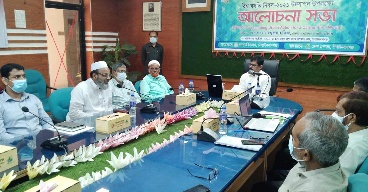 ‘নগরীয় কর্মপ্রন্থা প্রয়োগ করি, কার্বনমুক্ত বিশ্ব গড়ি’ প্রতিপাদ্যে চাঁপাইনবাবগঞ্জে বিশ্ব বসতি দিবস উপলক্ষে আলোচনা সভায় বক্তারা এসব কথা বলেন। চাঁপাইনবাবগঞ্জ গণপূর্ত বিভাগের আয়োজনে আলোচনা সভা বাস্তবায়ন করে জেলা প্রশাসন। সোমবার (০৪ অক্টোবর) বেলা ১১টায় জেলা প্রশাসকের সম্মেলনকক্ষে এ সভা অনুষ্ঠিত হয়।