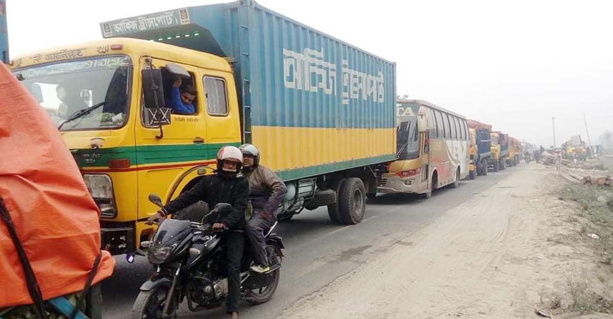 বঙ্গবন্ধু সেতুর ট্রাফিক কন্ট্রোল রুম সূত্রে জানা গেছে, বৃহস্পতিবার রাতে ঘন কুয়াশার কারণে তৈরি হওয়া যানজট শুক্রবার সকাল পর্যন্ত গিয়ে ঠেকেছে।