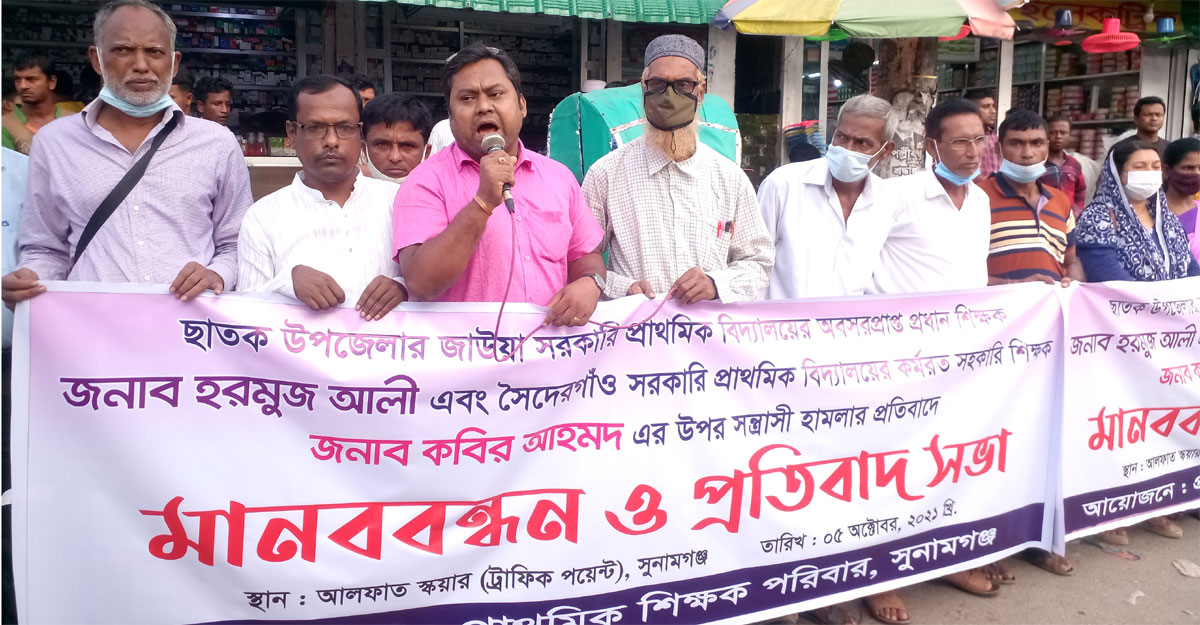 বক্তারা বলেন, শিক্ষাই জাতির মেরুদণ্ড। আর সেই মেরুদণ্ড তৈরিতে সবচেয়ে বড় কারিগর শিক্ষকরা। অথচ এই শিক্ষকরা আজ কোথাও নিরাপদ নন। বিদ্যালয়ে, ঘরে-বাইরে শিক্ষকদের ওপর সন্ত্রাসী হামলা হচ্ছে। এই হামলা ও মামলার পরবর্তী খোঁজখবর কেউ রাখেন না। ছাতকে দুই শিক্ষকের ওপর হামলার অনেক দিন পার হলেও এখনো সন্ত্রাসীরা থেকে গেছে ধরাছোঁয়ার বাইরে।