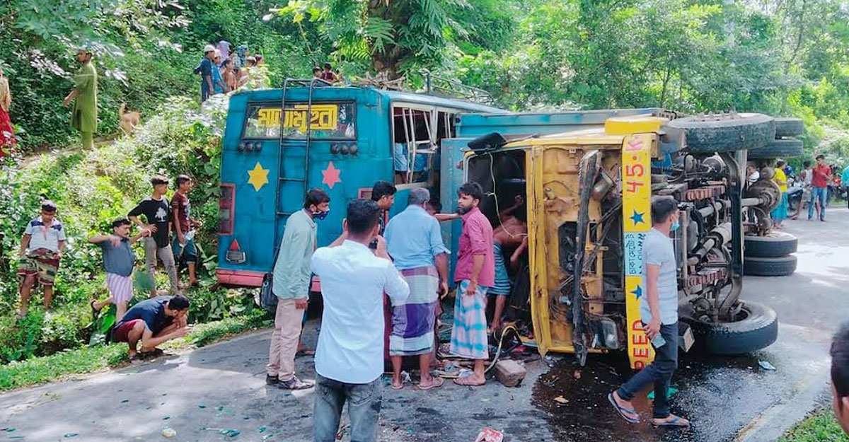 বান্দরবানে বাস-কাভার্ডভ্যান সংঘর্ষে চালক নিহত, আহত ২৯