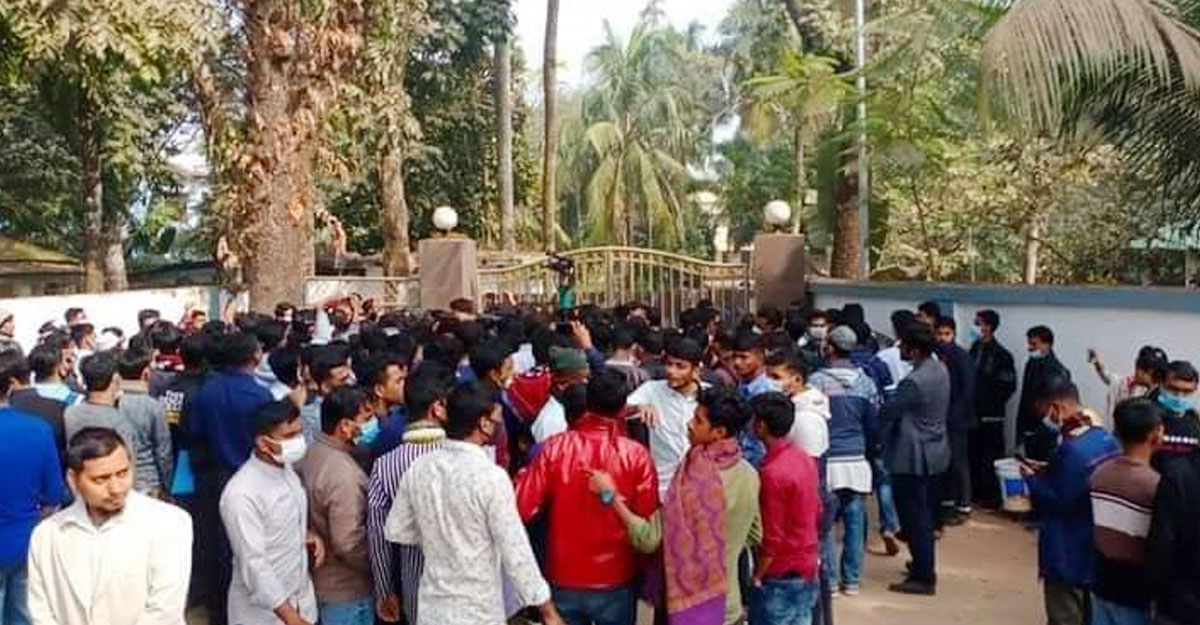 নিয়োগ পরীক্ষা স্থগিত করায় জেলা প্রশাসকের বাসভবন ঘেরাও