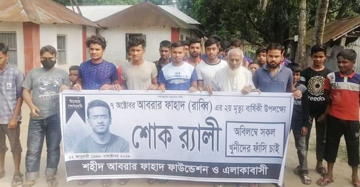 বাংলাদেশ প্রকৌশল বিশ্ববিদ্যালয়ের (বুয়েট) শিক্ষার্থী আবরার ফাহাদের হত্যাকারীদের ফাঁসির দাবিতে শোক র্যালি করেছে তার গ্রামের বাসিন্দারা। বৃহস্পতিবার (৭ অক্টোবর) সকালে আবরারের গ্রামের বাড়ি কুষ্টিয়ার কুমারখালী উপজেলার কয়া ইউনিয়নের রায়ডাঙ্গায় এ কর্মসূচি পালিত হয়।