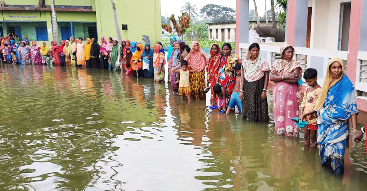 দ্রুত সময়ের মধ্যে মানবিক সহায়তা প্রদান, জলাবদ্ধতা নিরসনে টিআরএম প্রকল্প চালুকরণ, আমডাঙ্গা খালসহ জরুরী ভাবে হরি-টেকা ও মুক্তেশ্বরী নদী খননের দাবিতে হাঁটু পানিতে দাঁড়িয়ে এ মানববন্ধন করেছেন এলাকাবাসী।