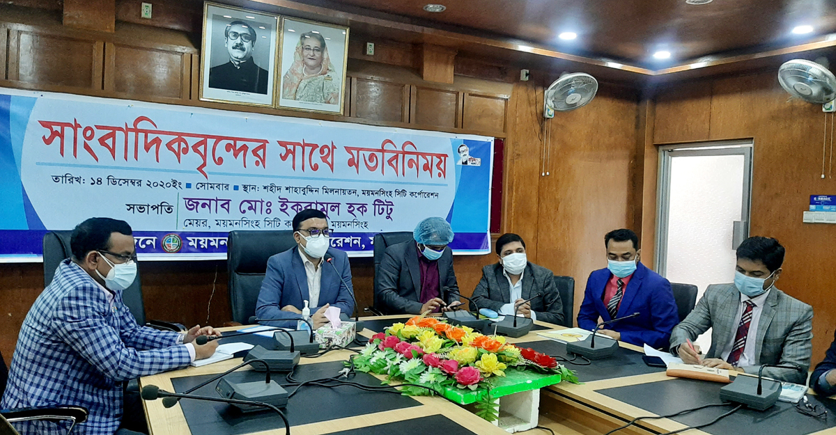 সাংবাদিকদের সঙ্গে মতবিনিময় সভায় বক্তব্য রাখেন ময়মনসিংহ সিটি করপোরেশনের মেয়র ইকরামুল হক টিটু