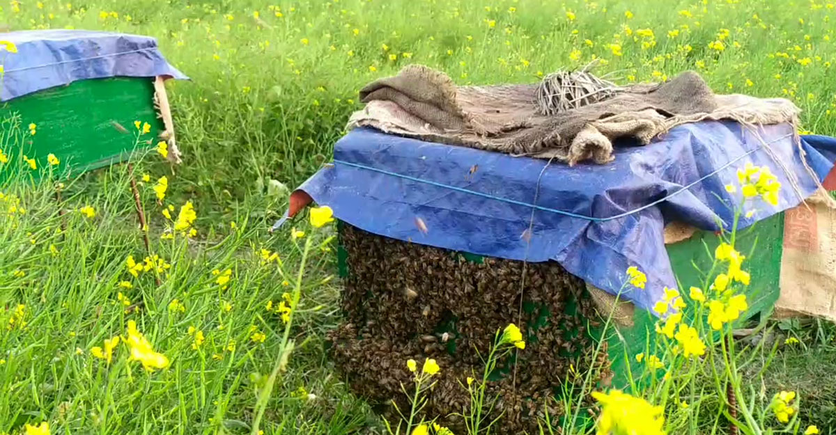 মৌমাছি উড়ে বেড়াচ্ছে ফুলের এক পাপড়ি থেকে অন্য পাপড়িতে। এক ফুল থেকে অন্য ফুলে। ঘটছে পরাগায়ন। ফুল থেকে সংগ্রহ করছে মধু, সেই মধু নিয়ে জমা রাখছে খেতের পাশেই রাখা সারি সারি বাক্সে। একটু দূরেই খেতের আলে দাঁড়িয়ে থাকা বিদেশফেরত মহসিনের মুখে ফুটে উঠছে সম্ভাবনার হাসি।