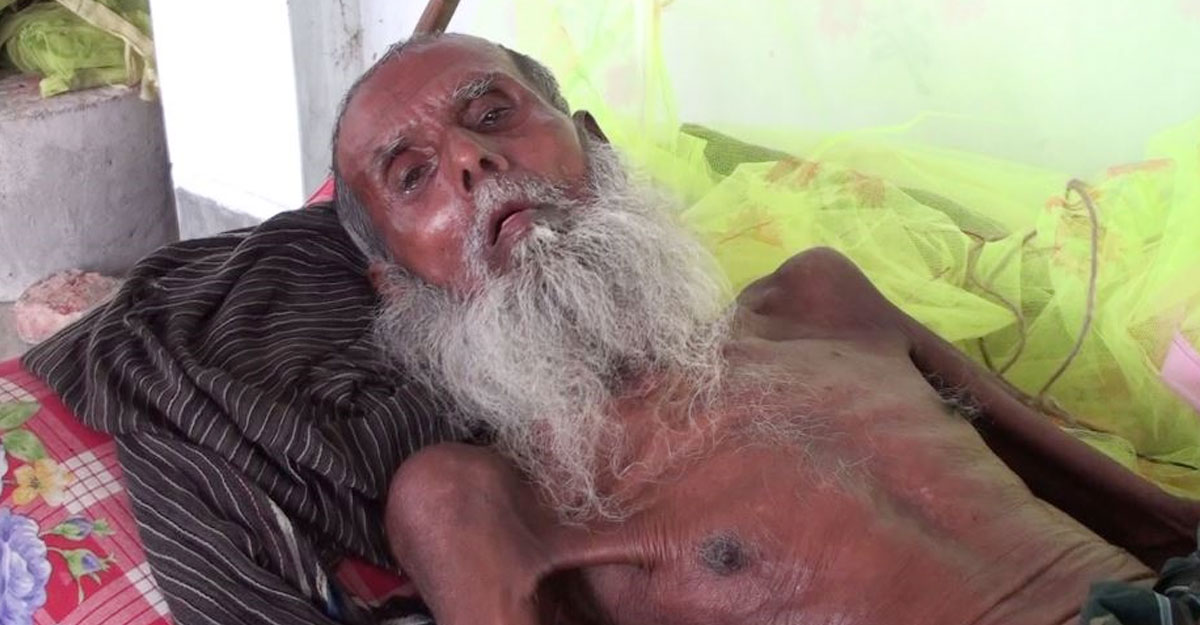 আব্দুল মালেক। বয়স ৯৯ বছর। ছিলেন গ্রাম্য কবিরাজ। দুই সন্তান ও স্ত্রীকে নিয়ে ছিল সাজানো সংসার। বয়সের ভারে এখন আর চলাফেরা করতে পারেন না। সন্তানদের ঘরেও এখন তার ঠাঁই নেই। অনাদরে সাতক্ষীরা শহরের ইটাগাছা পুলিশ ফাঁড়ি এলাকার বাসিন্দা আসাদুল ইসলামের বিল্ডিংয়ের মেঝেতে পড়ে আছেন। ৯ মাস মাথার নিচে ইট নিয়ে ঘুমাচ্ছেন। আর নিরবে চোখের পানি ফেলছেন।