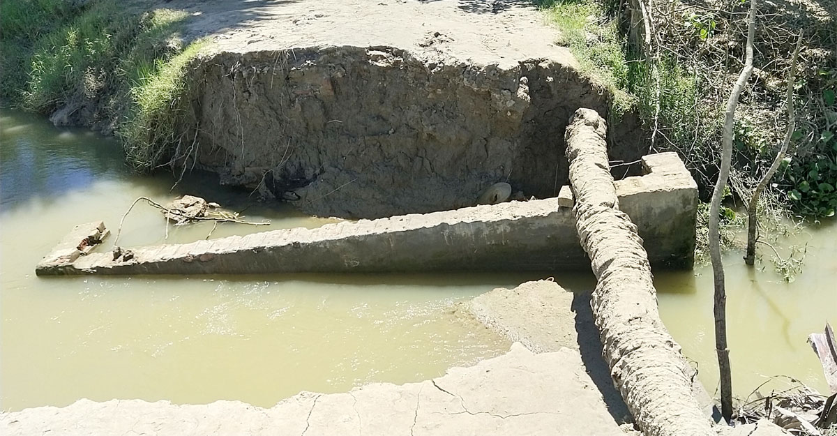 কালভার্ট ভেঙে খালে, খেজুরগাছই একমাত্র অবলম্বন