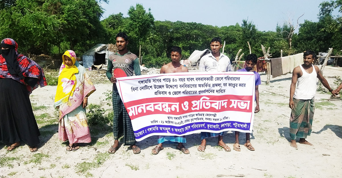 জেলেদের দাবি, তারা বাপ-দাদার আমল থেকে খড়কুটোর ছাউনি দিয়ে অনেক কষ্টে বনের পাশেই বসবাস করে আসছেন। কিন্তু গত ২১ সেপ্টেম্বর সকালে বন বিভাগের গঙ্গামতির বিট অফিসার মোশাররফ হোসেনের নেতৃত্বে অর্ধশতাধিক মানুষ অতর্কিত তাদের ঘর-দুয়ার ভাঙতে শুরু করে। বাধা দিলে তাদের মারধর করা হয়। চাল-চুলা পর্যন্ত ভাঙচুর করা হয়। বাসাবাড়ি ছেড়ে না গেলে আগুনে পুড়িয়ে ফেলার হুমকি দেওয়া হয়। বর্তমানে এসব পরিবারের সদস্যরা আতঙ্কে আছেন। এমনকি মহিপুর থানায় ২২ পরিবারের ৪০ সদস্যের নামে অভিযোগ দেওয়া হয়েছে।