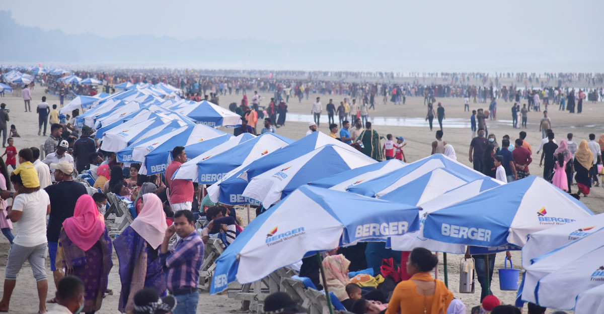 ছুটির দিনে পর্যটকে ঠাসা কক্সবাজার সৈকত