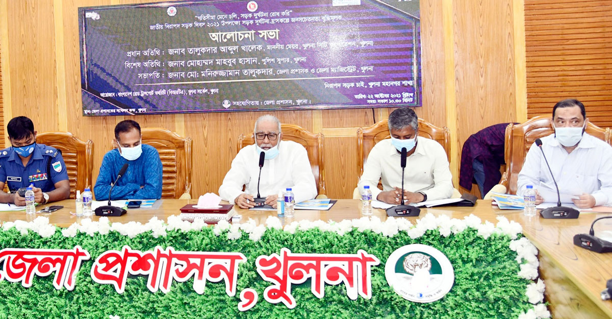 শুক্রবার (২২ অক্টোবর) খুলনা জেলা প্রশাসকের সম্মেলন কক্ষে সড়ক দুর্ঘটনা হ্রাসকল্পে জনসচেতনতা বৃদ্ধিমূলক আলোচনা সভায় প্রধান অতিথির বক্তব্যে তিনি এসব কথা বলেন। ‘গতিসীমা মেনে চলি, সড়ক দুর্ঘটনা রোধ করি’ স্লোগানকে সামনে রেখে খুলনায় জাতীয় নিরাপদ সড়ক দিবস পালিত হয়।