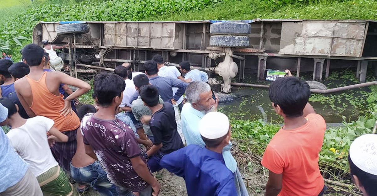 নোয়াখালীতে যাত্রীবাহী বাস খালে, আহত ৩০