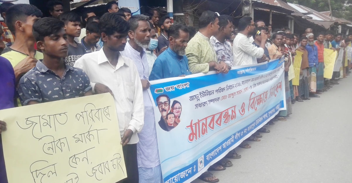 ইউনিয়নের শত শত নারী-পুরুষ মানববন্ধন শেষে একটি বিক্ষোভ মিছিল বের করেন। মিছিলটি চৈতন্যবাজার হয়ে কয়েকটি সড়ক প্রদক্ষিণ শেষে আবারও একই জায়গায় মিলিত হন।